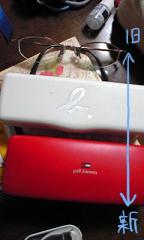 写真(左):私のメガネ遍歴。ケースが真っ赤なので、渡された時はちょっとびっくり。