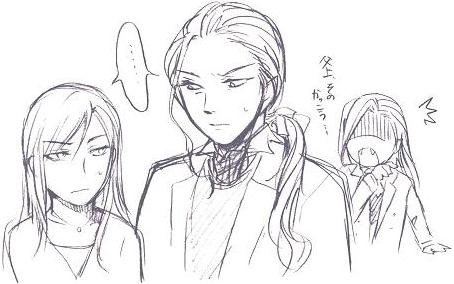 赤川次郎の「吸血鬼はお年頃」を読んで。話は……(正直つまらない)なのですが、主人公の父親がフォン・クロロック!ついつい「ダンス・オブ・ヴァンパイア」の方にイメージが流れてしまいます。伯爵が普通な服を着たらこんな感じ…?と思いながら描いてみました。左から神代エリカ、クロロック、ヘルベルト。こっちでは伯爵の子が娘なんですよね…。