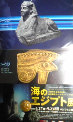 海のエジプト展に行ってきました。心配していた混雑具合も全然問題なし。メモを片手にうろついている小学生がチラホラいて、夏休みの自由研究ラストスパートな感じでした。でも、神様の名前をメモするだけじゃあ研究にならないと思うのです…。それはさておき、展示作品も面白いのですが、なにしろ海から発掘された品々ということで、発掘までの道のりが凄い。映像が沢山あって、ああやって測量するんだ!おお、像が出てきた!と、思わず見入ってしまいました。結構ボリュームがあって、途中で閉館時間となってしまったのが残念です。1時間半あれば見おえると思ったのですが、あれは2時間でも足りないかもしれない。