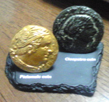 売店みてる時間もなかったので、ポストカード2枚(スフィンクス、ウジャト)と、ガチャポン(プトレマイオスとクレオパトラの肖像のコイン)。コインにはちゃんと台座もついているのですよ!ガチャポンと言えど、クオリティは高いです!