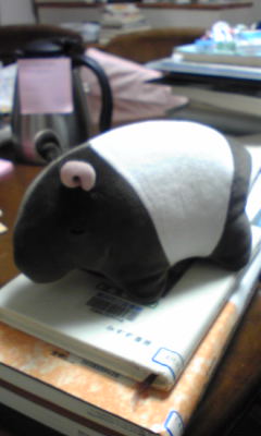 貘買っちゃいました!前からずっと気になってはいたものの、すでにわが家には大勢いるので諦めてたんですが…。つい…。というか、これ以上縫いぐるみ増やすな!と強硬に言っていた母が昨日転んで気落ちしてしまい、手当して慰めてあげたらOKサインをくれたのでした。